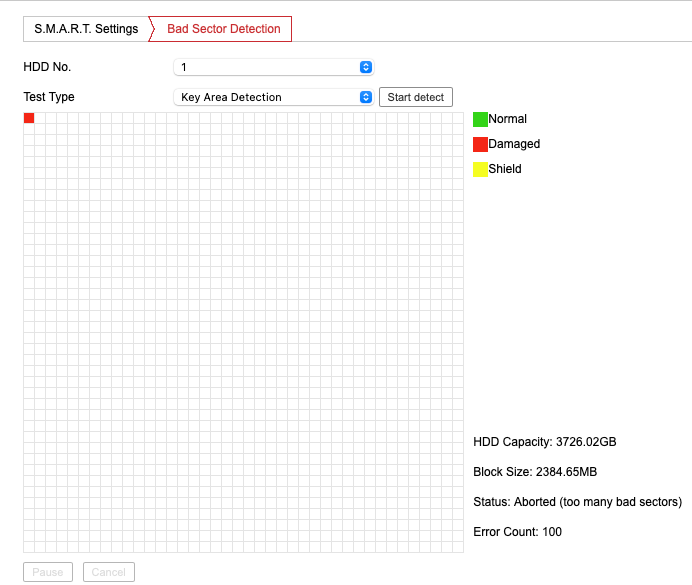 I have turned off/on the NVR and all seemed to be working fine and when checking NVR via web it was showing as good but when I ran the bad detection it finished all green but then started beeping again, redone the bad detection but this time it was encountering a red block on the first one.