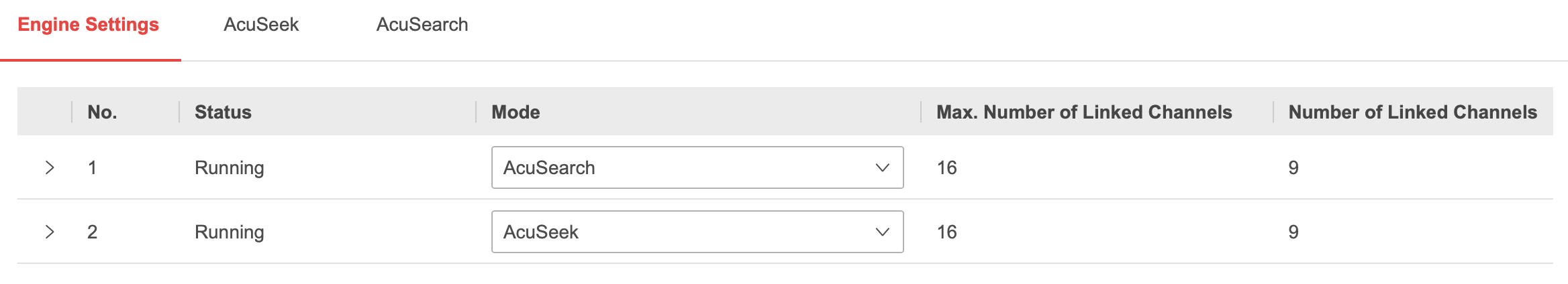 Had another issue yesterday. An unexplainable failure of the AcuSearch function. AcuSeek continued to work normally but on local UI, web UI and Hik-Connect AcuSearch would fail to find any targets to search despite there being people and vehicles in view. The photos below show the setup with both engines in use - one for AcuSearch, one for AcuSeek and all channels enabled: