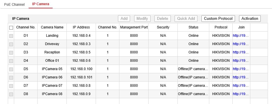 Did you change the subnet/Internal network card address of the NVR? The default subnet address range of the Hikvision NVRs is always 192.168.254.xxx but yours are added as 192.168.0.xxx