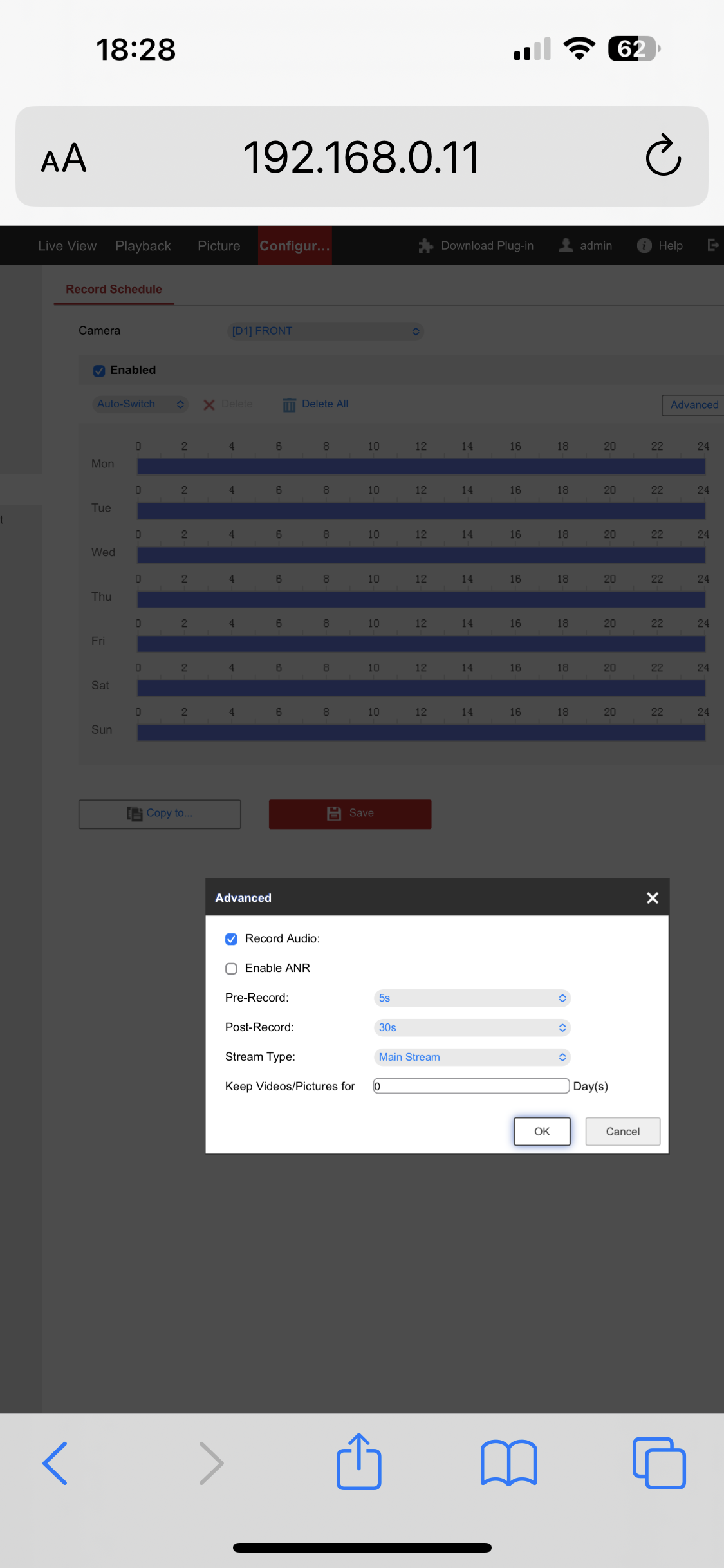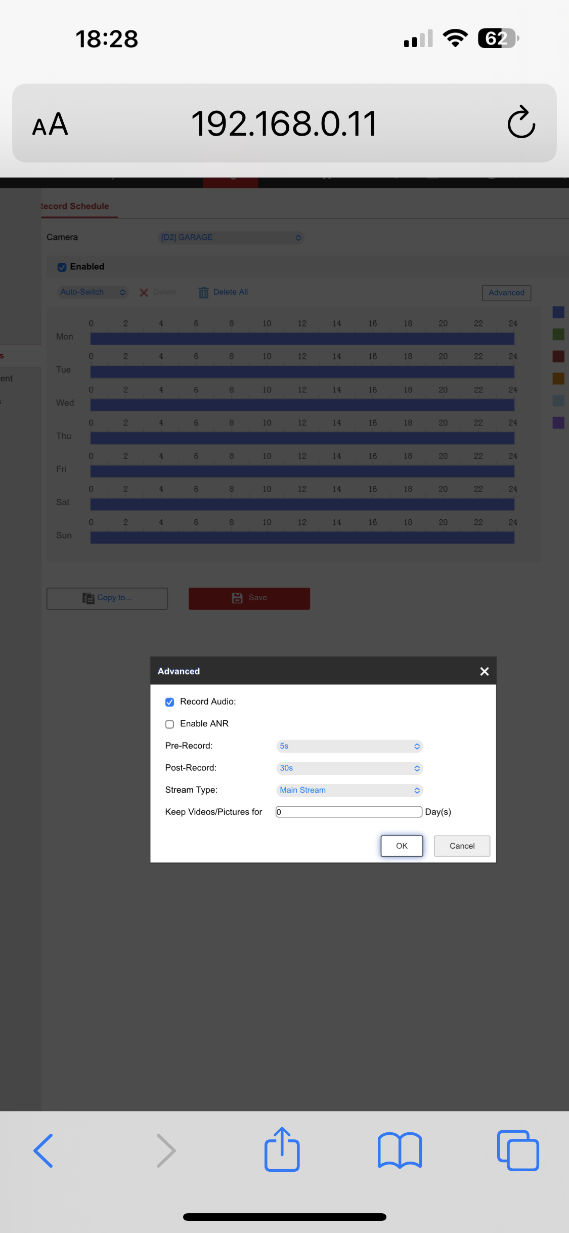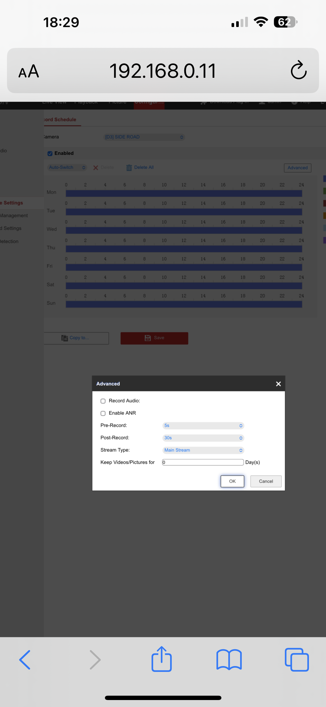 Also, to rule out any mobile browser / app issues, could you also please check the recordings and schedules on the NVR directly (via a directly connected monitor and mouse), or from a PC in Microsoft Edge in Internet Explorer mode (whichever is easiest)?