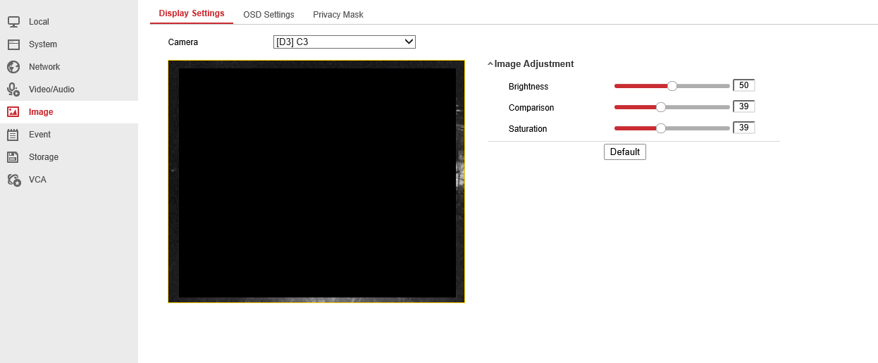 - the Image settings menu entry shows only 3 editable settings: brightness,comparison,saturation