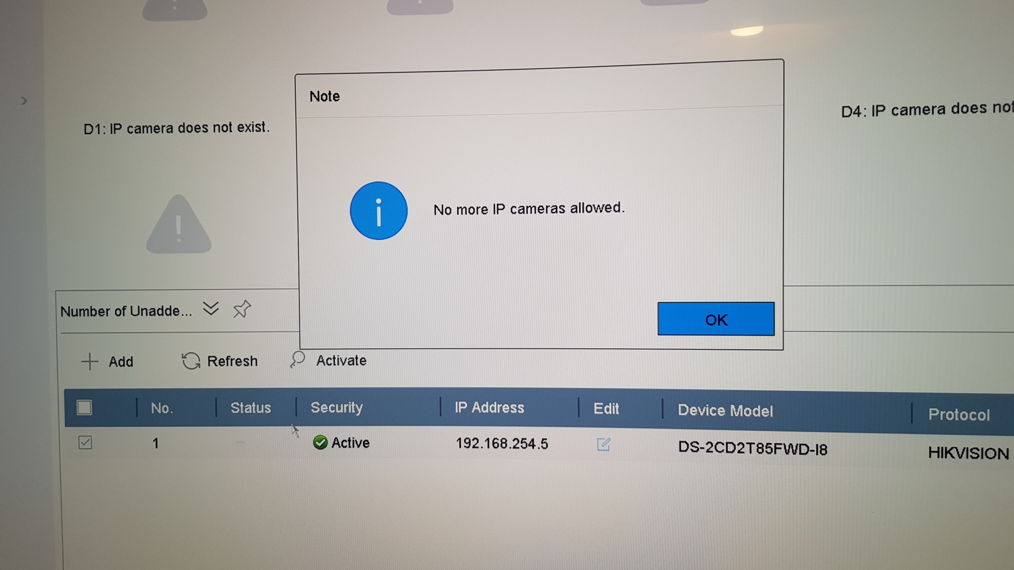 Had my 2 cameras plugged in to my nvr working fine now i have plugged my cameras in to my PoE switch they wont work I get no more ip cameras allowed, Any Help. Thank's Leigh