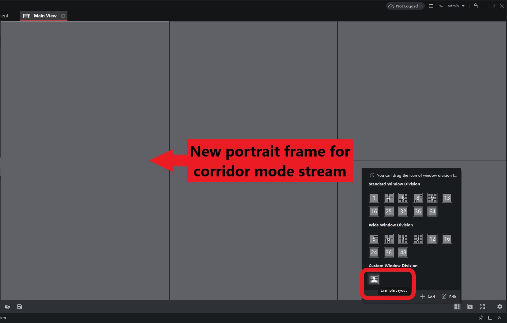 Click on the small icon made up of several small boxes at the bottom of your Main View screen in the program, this should bring up the window division page. Click Add to create a Custom Window Division.