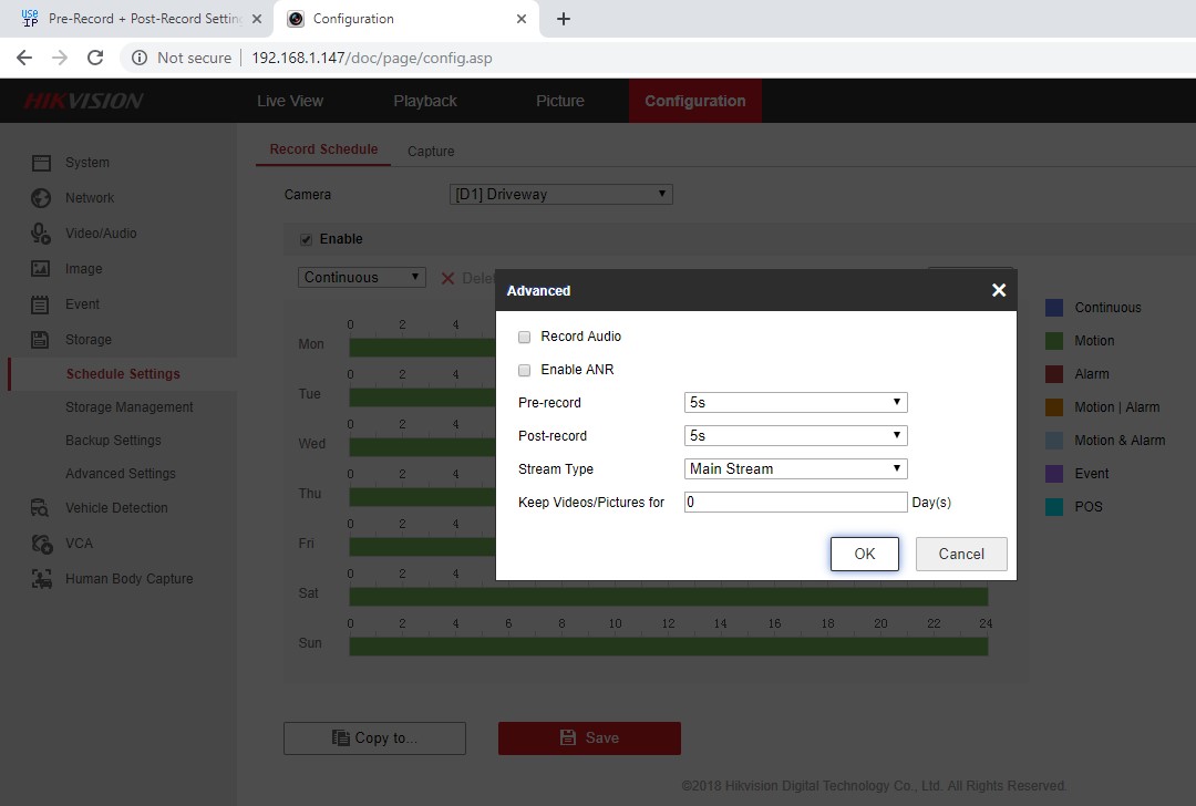 1.. Post/Pre record not working (Have now set to 5s and still not working)