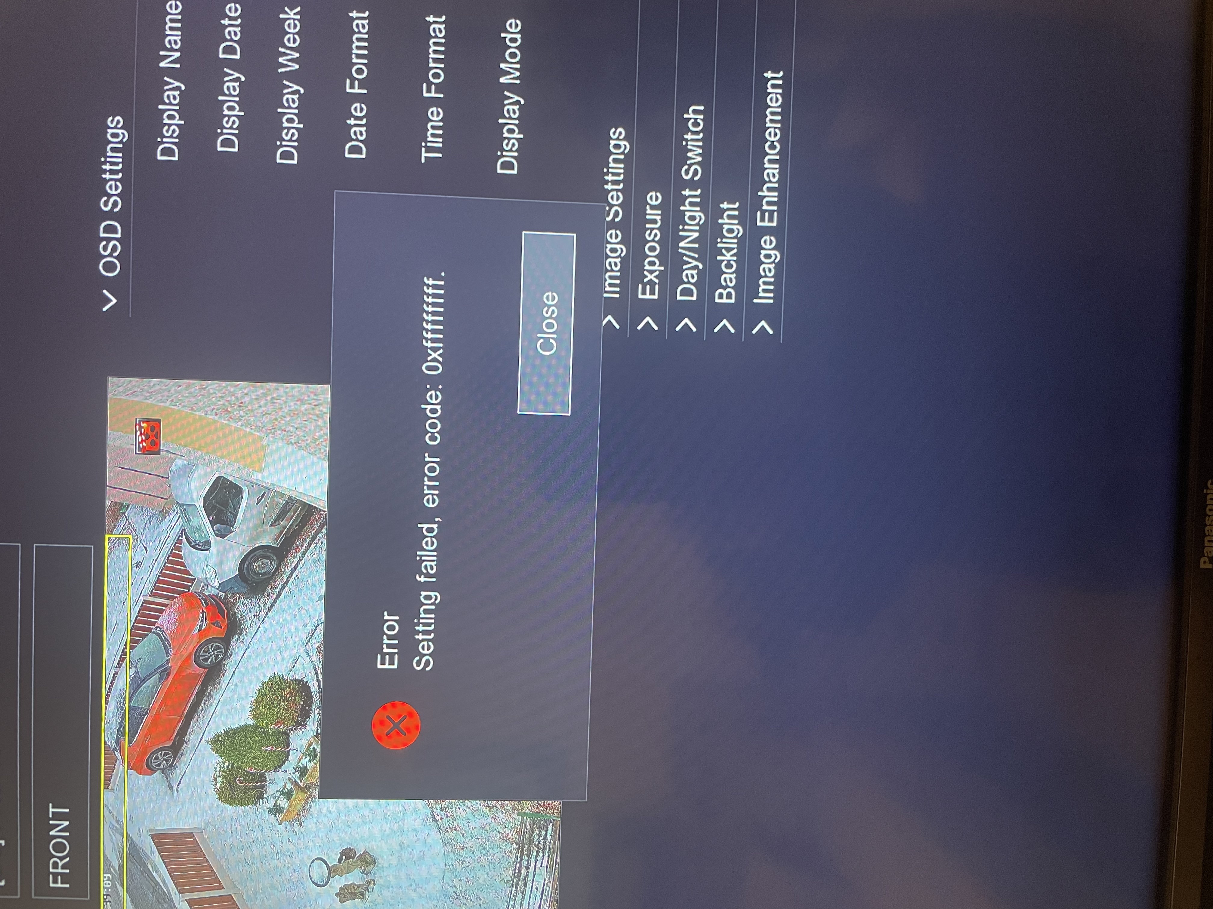 I am getting a setting failed error code on 2 of my camera 8mp after playing about trying to get the best settings.