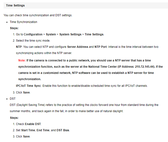 Phil Administrator Staff member Messages 5,195 Points 113 Apr 6, 2022 #2 The correct setup is pretty straight forward, please see the below attachments. Attachments Time settings contextual help 6-4-22.png 18.6 KB · Views: 148 NVR Time Settings 6-4-22.png 39.1 KB · Views: 155