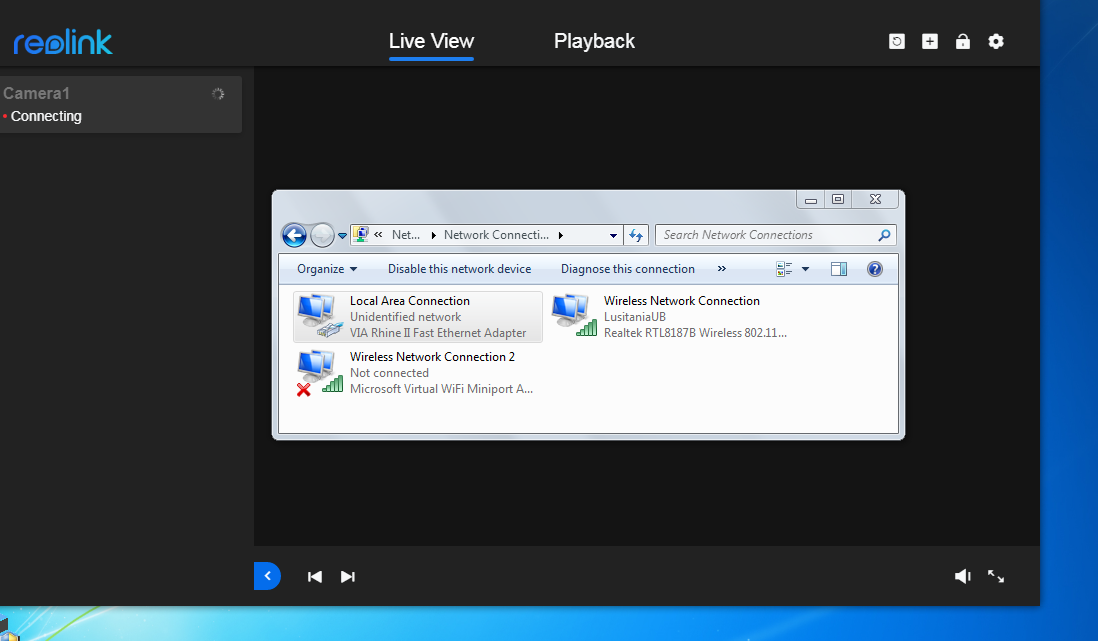 I unplugged everything and then reconnected everything and opened Reolink client software - unfortunately, with same result as before, I'm getting the 'connecting/timeout messages' in the client software.